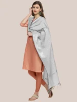 - This Fine Banarasi dupatta is adorned with beautiful woven motifs along with rich silver zari border.