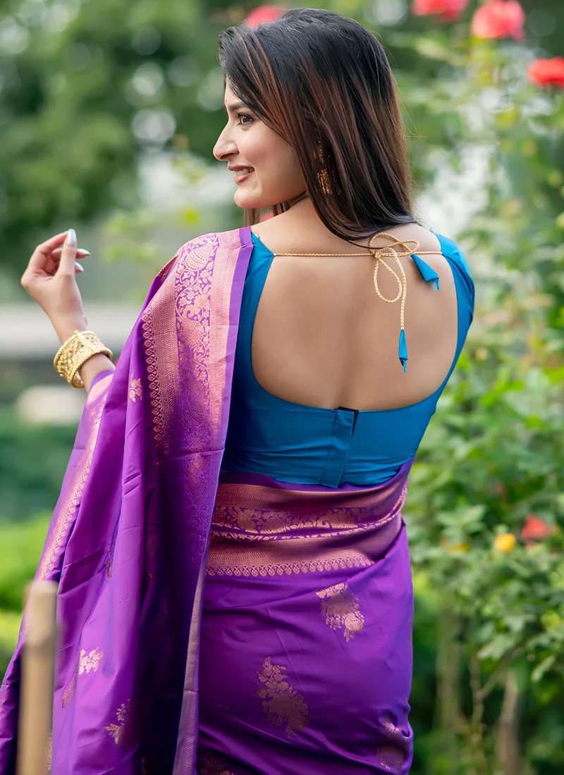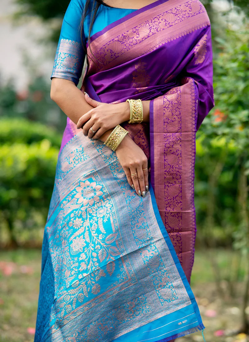Introducing our exquisite Jacquard Zari Work Banarasi Art Silk Saree a mesmerizing blend of tradition and contemporary elegance. Crafted with precision and finesse this saree embodies the timeless allure of Banarasi artistry accentuated with intricate Jacquard Zari work. Draped in a captivating shade of Purple, this saree exudes femininity and grace, making it perfect for special occasions and celebrations. The vibrant hue adds a touch of vibrancy to your ensemble ensuring all eyes are on you wherever you go.