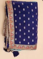 Real beauty can come out from your dressing style and trend in this sky blue and navy blue color viscose chanderi silk saree beautified with embroidered and zari work over the saree add a sign of beauty statement to your look. This saree comes with unstitched navy blue color banglori silk with embroidered work blouse.