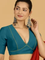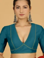 Erum x Rozaana | Elbow Sleeves Saree Blouse in Crystal Teal