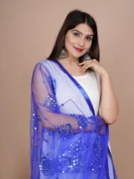 Indian Bollywood Solid Designer Net Sequence Dupatta, Scarf, Shawl, Chunni Latest Wedding Women Dupatta with Matching Lace, Gift for Her