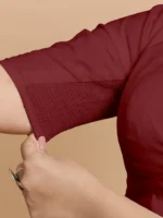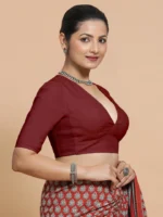 Malika x Rozaana | Deep Neck Saree Blouse in Cranberry Red Linen