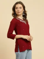 Look ethereal in this Aari work Kurti, freshly crafted in the lightness and comfy feel of cotton.