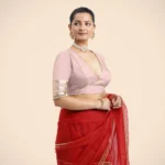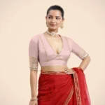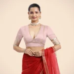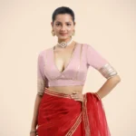 Home Blouse Half-Sleeve Blouse Nafeeza x Tyohaar | Elbow Sleeves Baby Pink FlexiFi Gota Embellished Saree Blouse with Plunging V-Neck