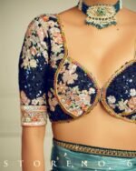 - Blue Georgette Elbow Sleeves Blouse with Multicolour Thread And Sequins Embroidery Works