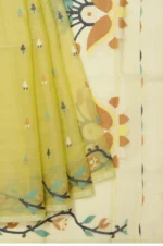 Ironing: Iron the saree on a low to medium setting while it’s slightly damp. Use a cotton or muslin cloth on top of the saree to protect delicate embroidery or zari work.