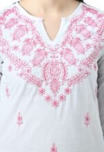 Look ethereal in this Lucknowi Chikankari Kurti, freshly crafted in the lightness and comfy feel of cotton.